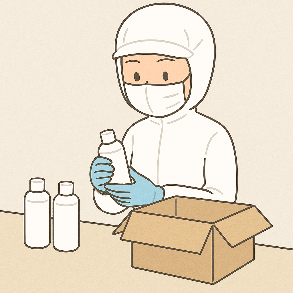 かわいいコスメ容器のフタ閉めや印字チェック