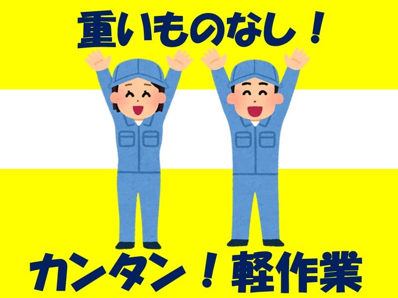 【お仕事内容】 エアコン関連部品を扱います。 小さな部品が多く、重いものはありません。 ・流れていくラインに一定間隔で金属部品を置く ・機械の決められた場所にパーツを入れる ・部品の組み立て など ★むずかしい作業なし! ★経験やスキルは不問ですが、 部品が小さいため細かな作業が得意な方におすすめです。 【就業環境】 ・就業人数:20~30名 ・制服あり(貸与) 【お仕事開始までの流れ】 応募 ⇒ 職場見学 ⇒ お仕事スタート ※履歴書・職務経歴書は不要です。 ※最短即日で就業可能