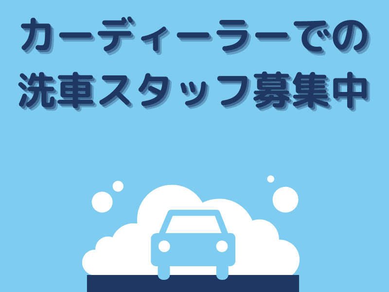 カーディーラーの展示車などの洗車をお願いします! *洗車機のスタートボタンを押す *洗車後の車を綺麗に拭く *車内のゴミを捨てるなど清掃 *店舗のゴミ出しや整理整頓 *代車や試乗車にガソリンの給油 *入荷された部品の仕分け など未経験でもできるシンプル作業☆