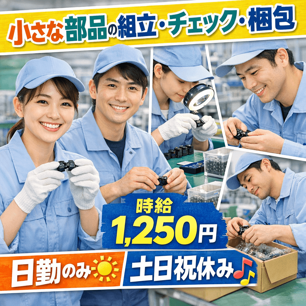 【名張市】小さな部品の組立・チェック・箱詰め/日勤のみ&土日祝休み/大手工場🏭[nara-k19]