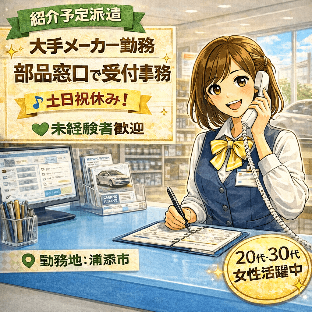 業界大手メーカーでの受付事務をお任せします。 ・専用システムへの入力 ・伝票入力/伝票発行 ・請求書作成 ・お客様からの在庫や商品に関するお問合せ対応 【 福利厚生 】 〇各種保険完備 〇資格奨励制度あり 〇専門研制度あり 〇育児・介護支援制度あり 〇社会保険完備 〇無料駐車場有 〇賞与年2回、決算賞与もあり 〇退職金制度あり