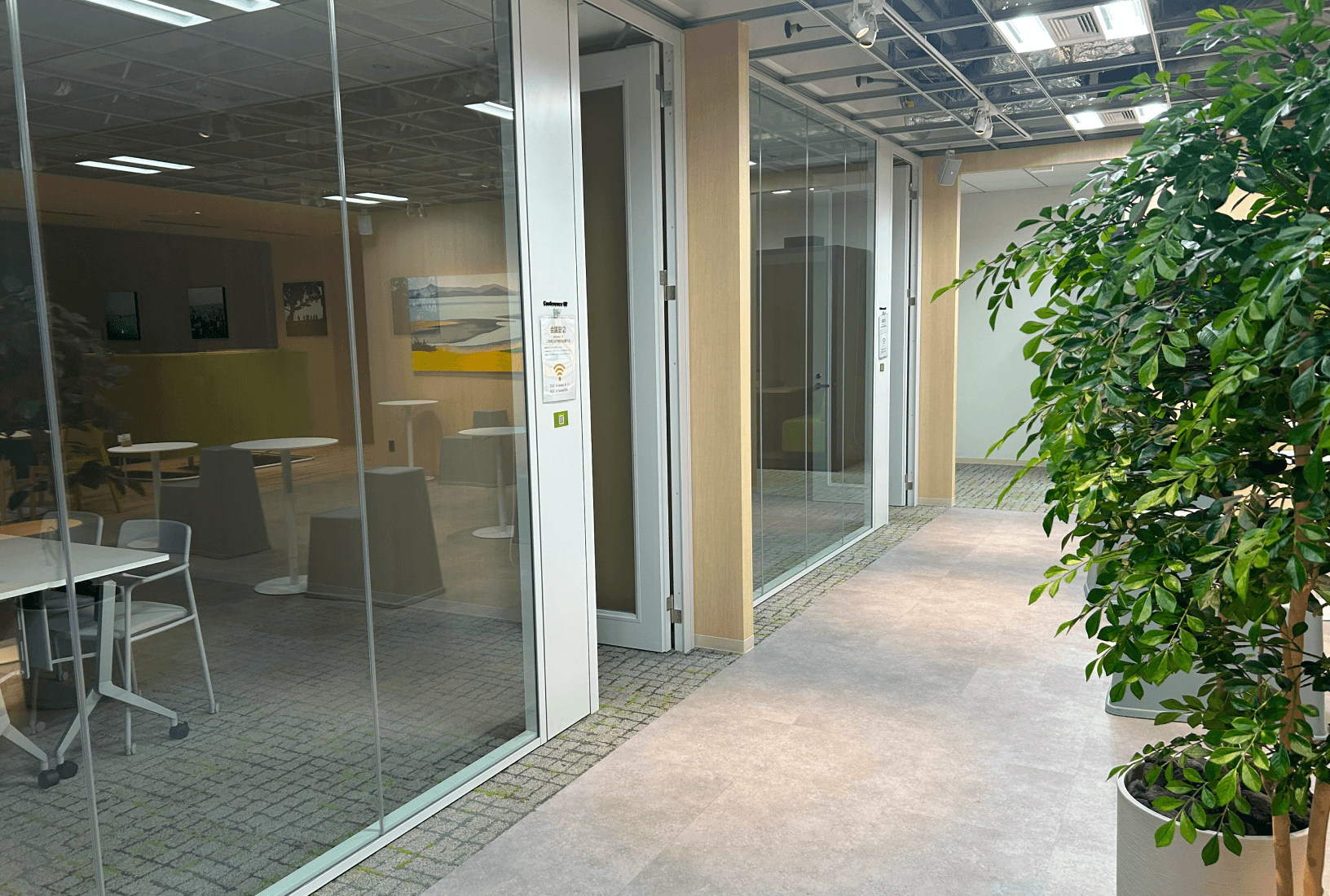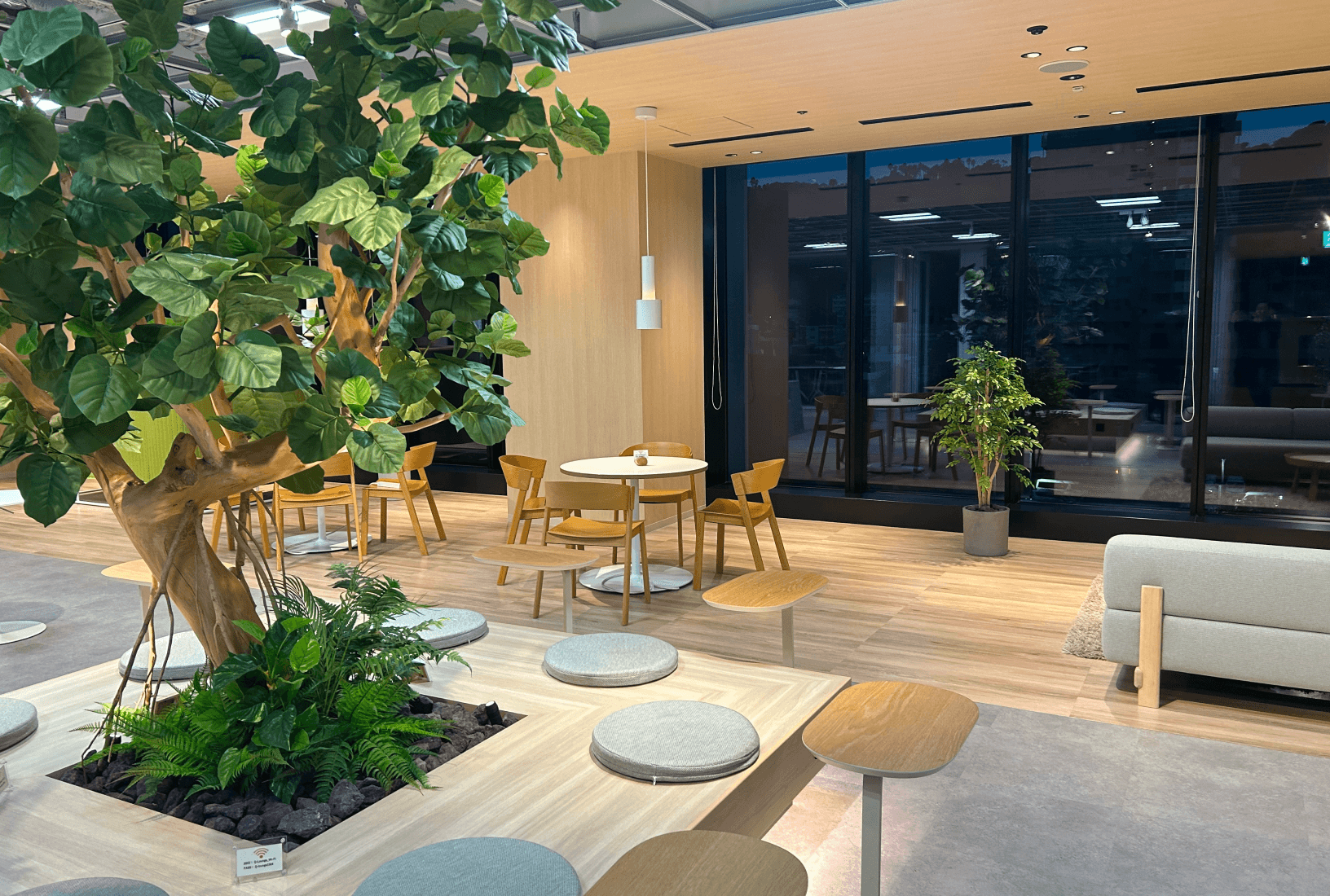 社員が安心して働ける、落ち着いたオフィス環境。コミュニケーションを取りやすい空間づくりを大切にしています。