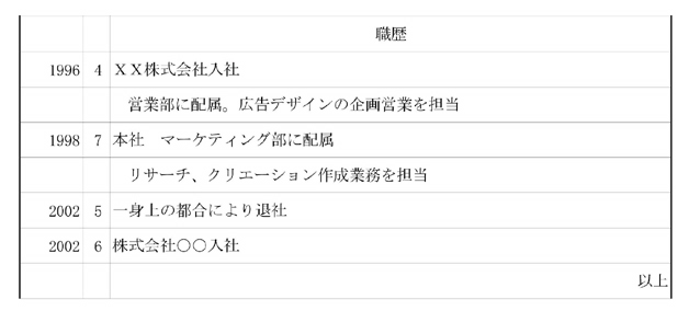 転職の場合、最も重視されるのが職歴欄です。企業の採用担当者は、職歴をみて、即戦力になりえるかどうかを判断しています。職務経歴書に詳細を書いているからいいと思っている方もいるかも知れませんが、多数の応募がある場合、人事担当者が職務経歴書にじっくりと目を通すとは限りません。そのためにも、職歴欄には会社名だけでなく、配属部署や業務内容まで記入してください。それにより、応募者の印象が大きく変わることもあります。また、退職理由はよほどの理由がない限りは「一身上の都合」と書いておくほうがよいでしょう。