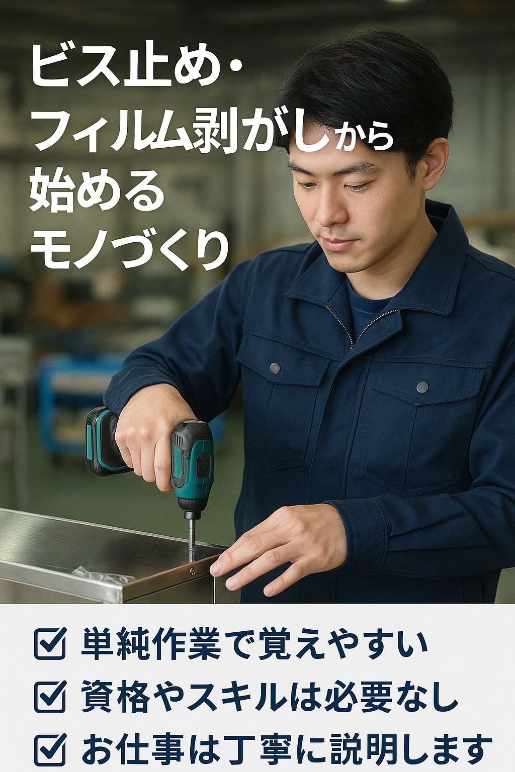 組立作業の補助:部品の受け渡し・仮止め・完成前チェックなど、組立担当のサポート業務