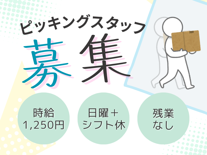 - 〇力持ち必見求人!もくもくピッキングで時給はなんと1,250円!!!