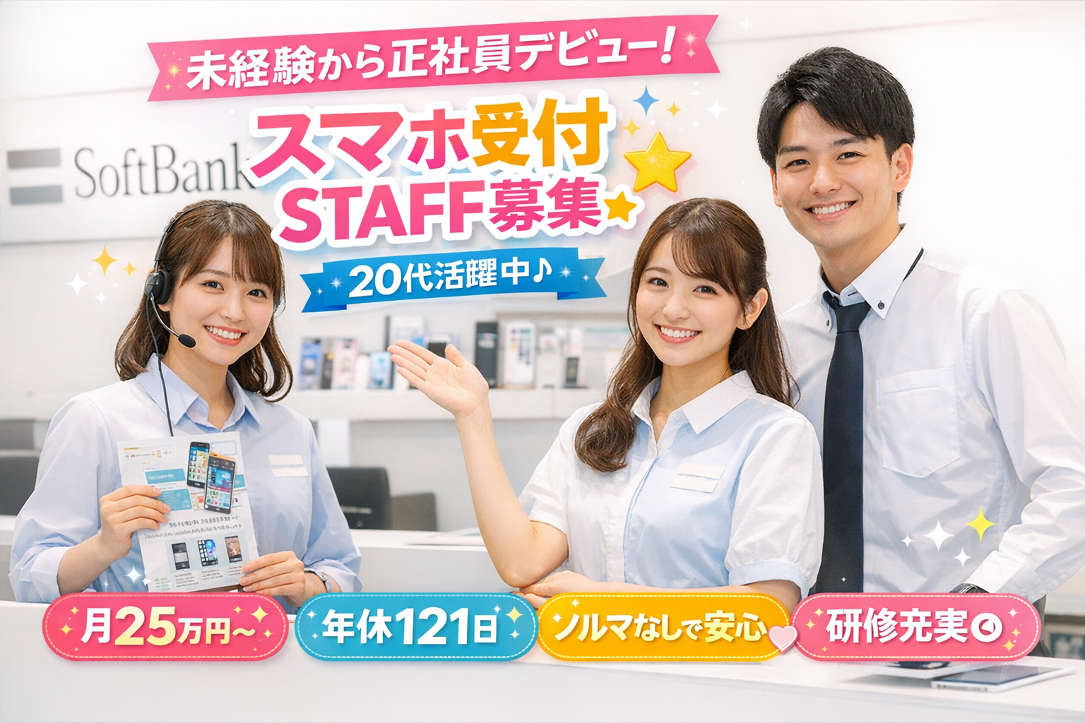 【📢<正社員デビュー応援】スマホショップの受付スタッフ📱未経験OK|月25万~|年休121日|ノルマなし[nara-s21]