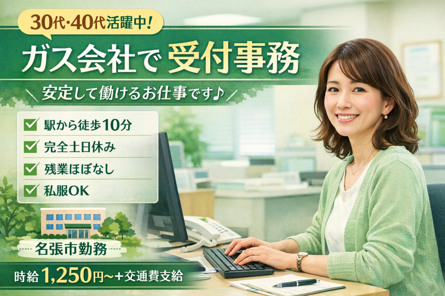 【接客×事務】ガス会社での受付事務|土日休み|残業ほぼなし [nara-k24]