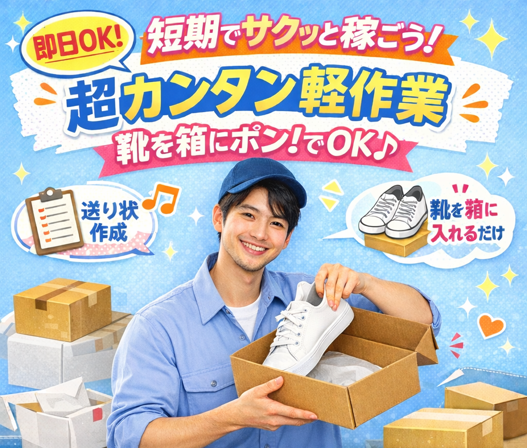 - 靴の梱包・箱詰めスタッフ(短期)