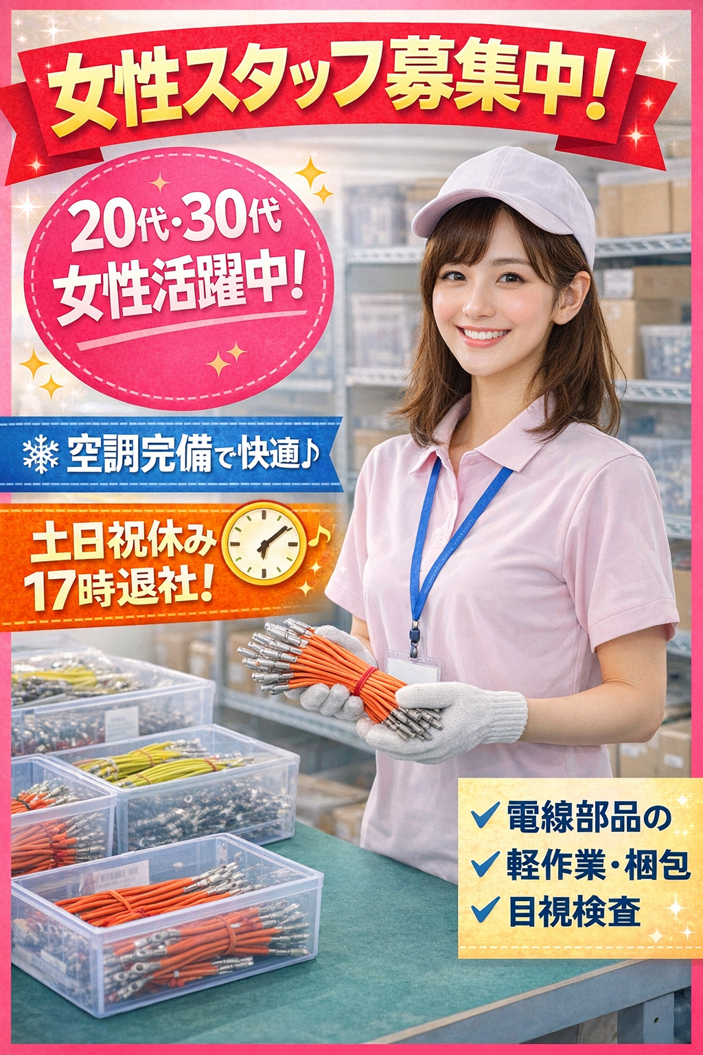 - 未経験歓迎 細かい作業が得意な方 \20代30代女性中心に活躍中/ 公共交通機関利用せず通勤可能な方