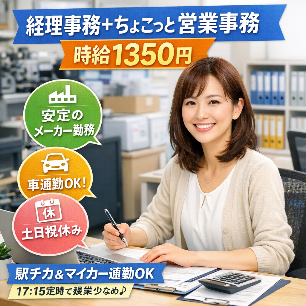 《田原本・時給1350円》経理事務メイン/決算補助あり/土日祝休み[nara-s28]