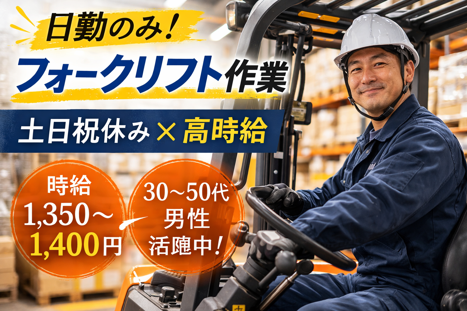🚧日勤のみ×時給1,400円可🚧 フォークリフト中心の倉庫作業|土日祝休み|長期安定[nara-a17]