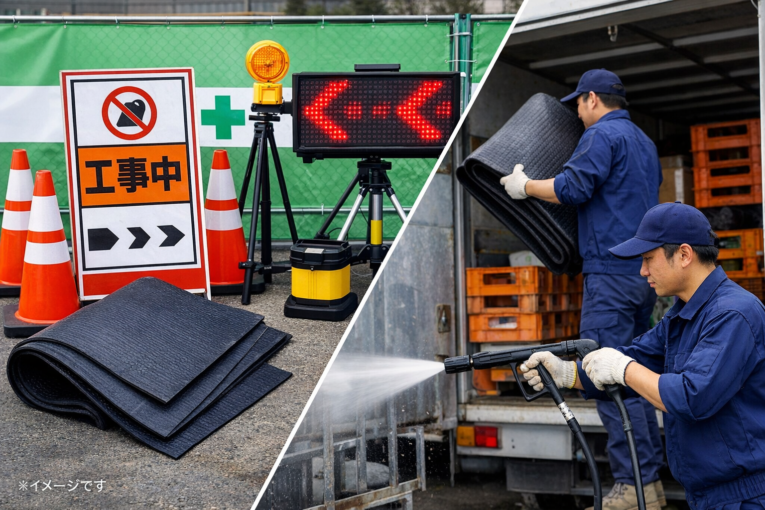 - 工事現場などで使われる看板や電工掲示板、カラーコーンなどの機材をレンタルしている企業でのお仕事です